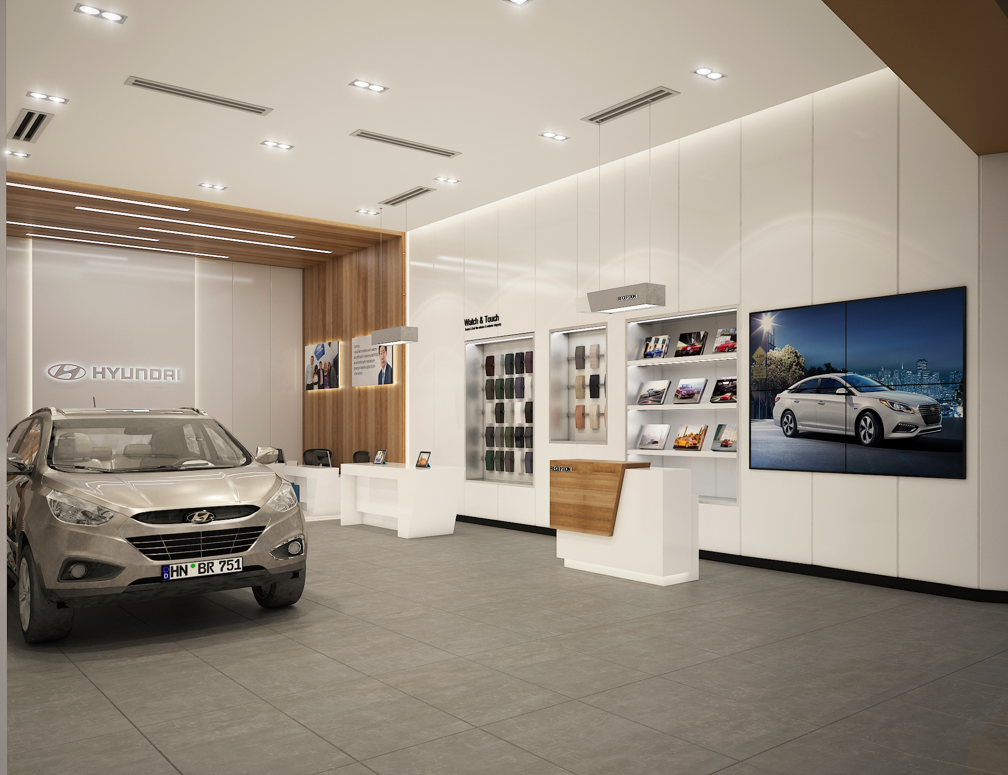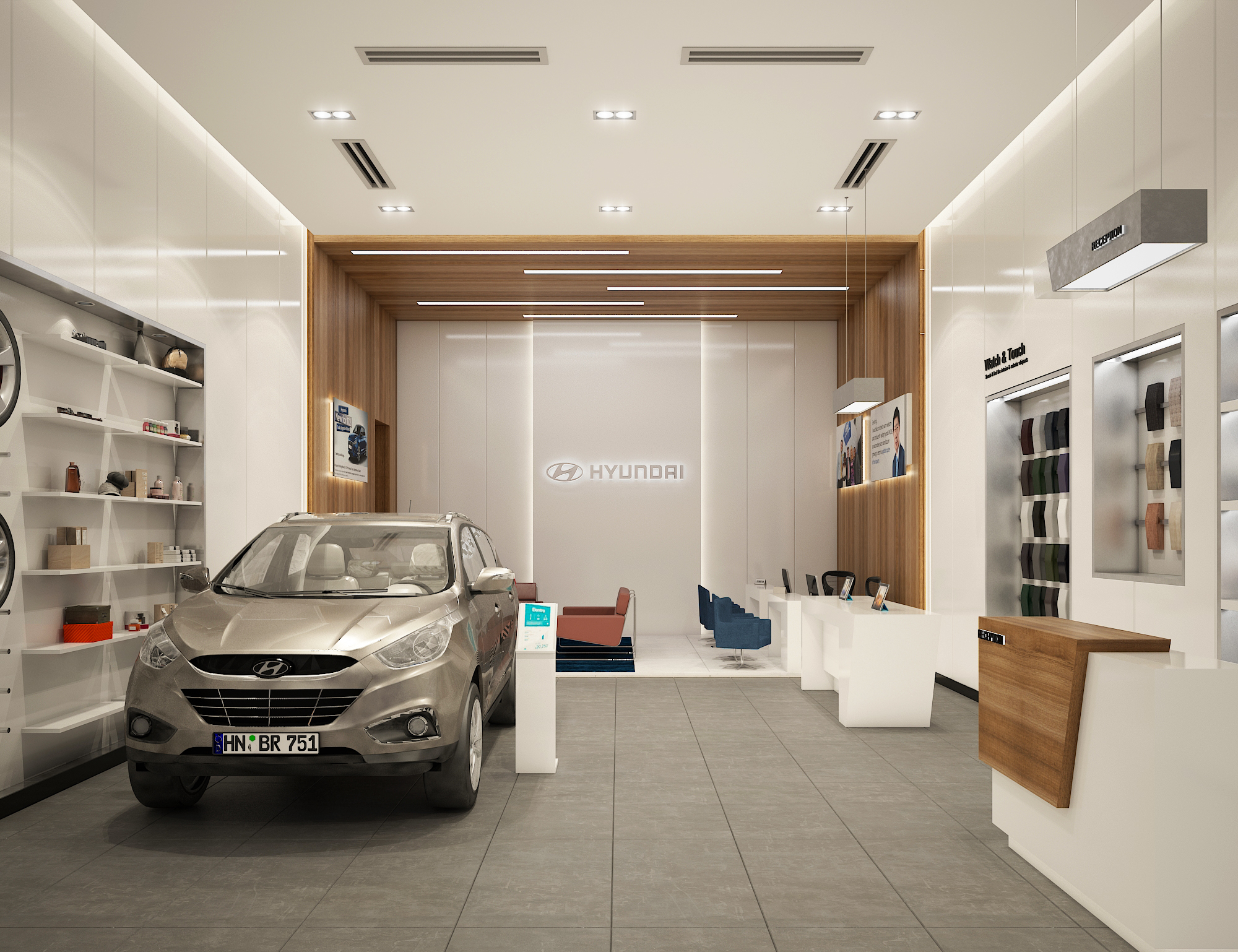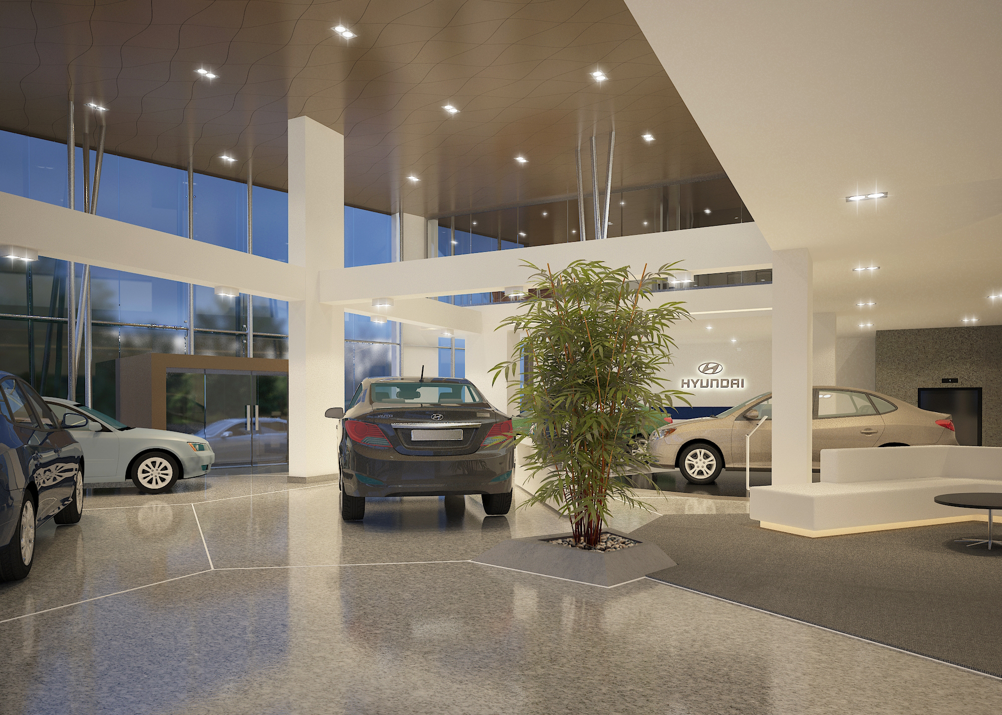 A modern car showroom that combines contemporary architecture with functionality. Open layouts, clean lines, and bright display areas provide a spacious and welcoming atmosphere, allowing vehicles to take center stage.