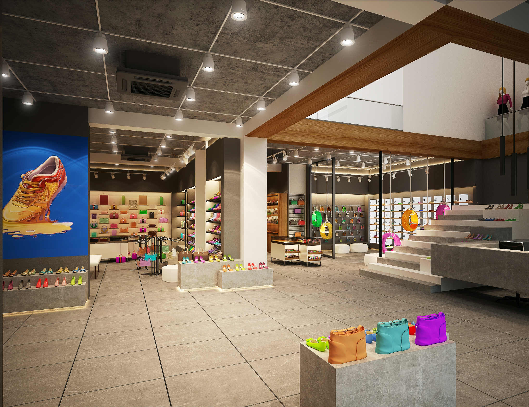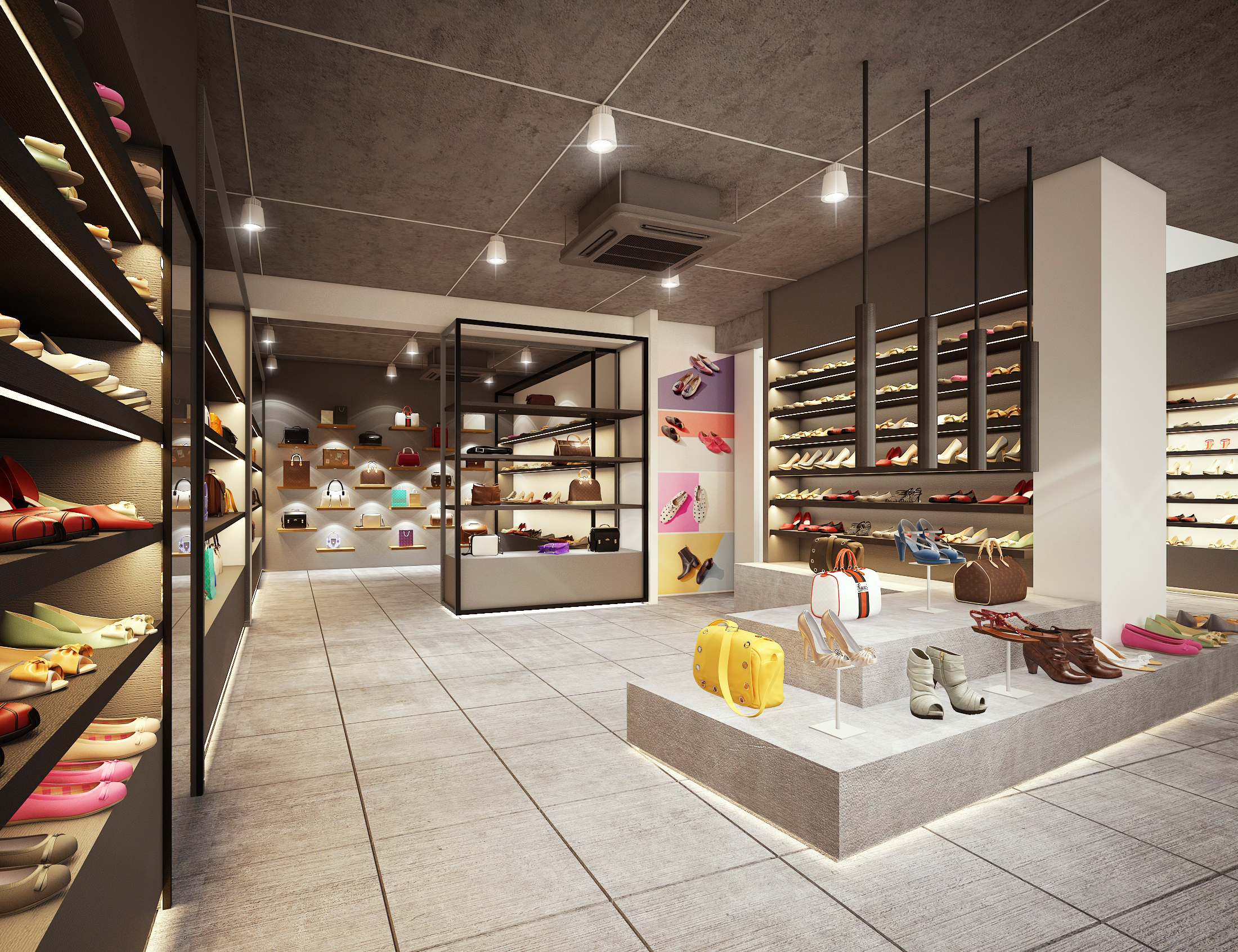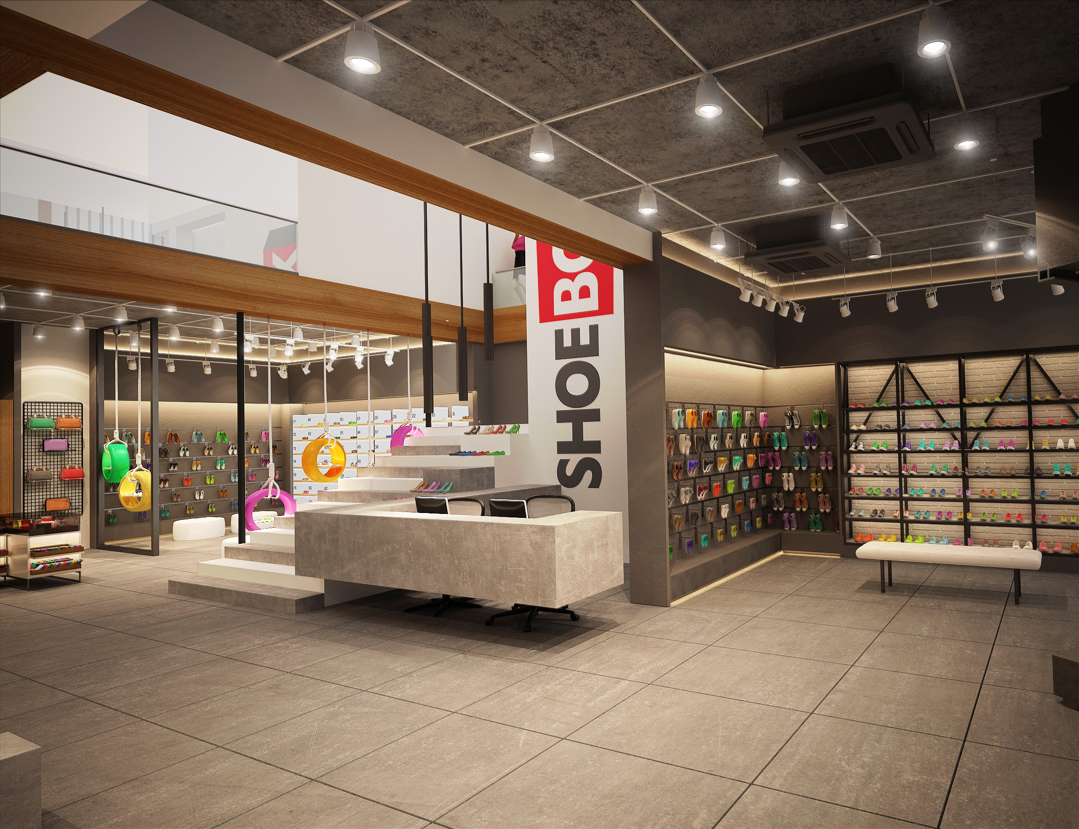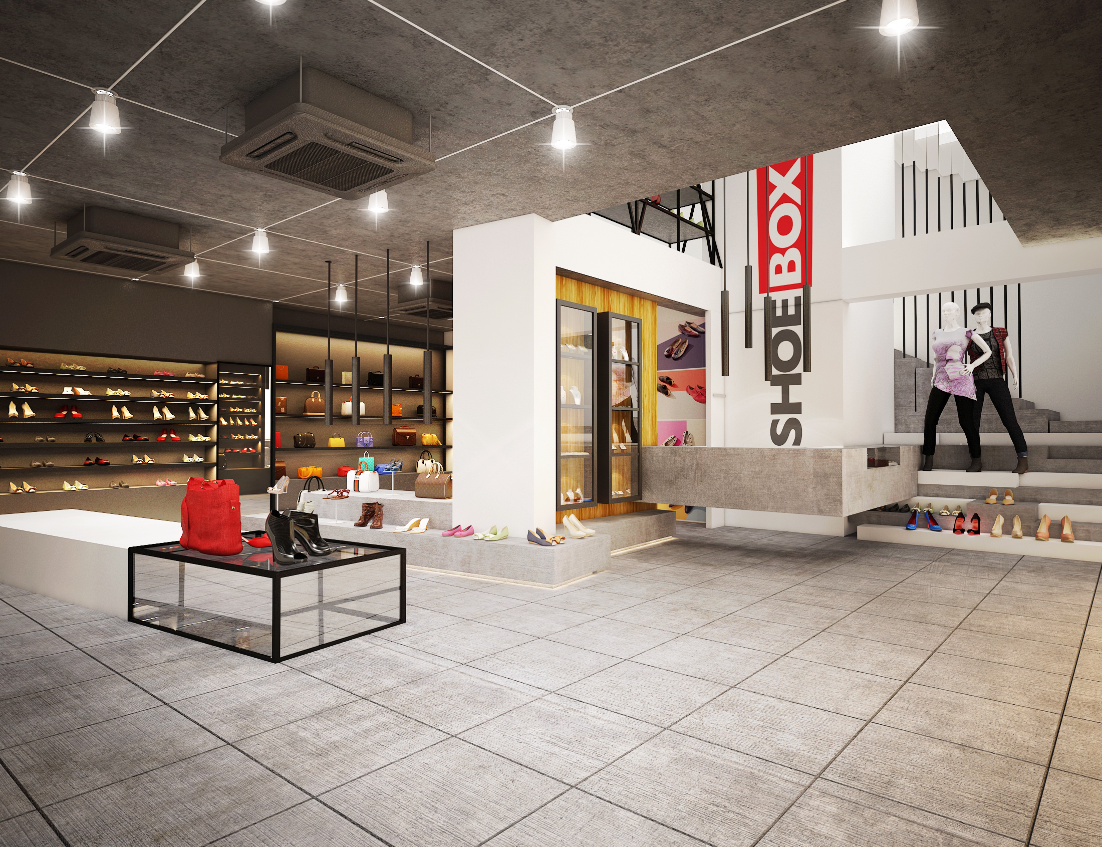 A modern shoebox retail space designed with a sleek layout and contemporary interiors, focused on effective product display and a clean, engaging customer experience.