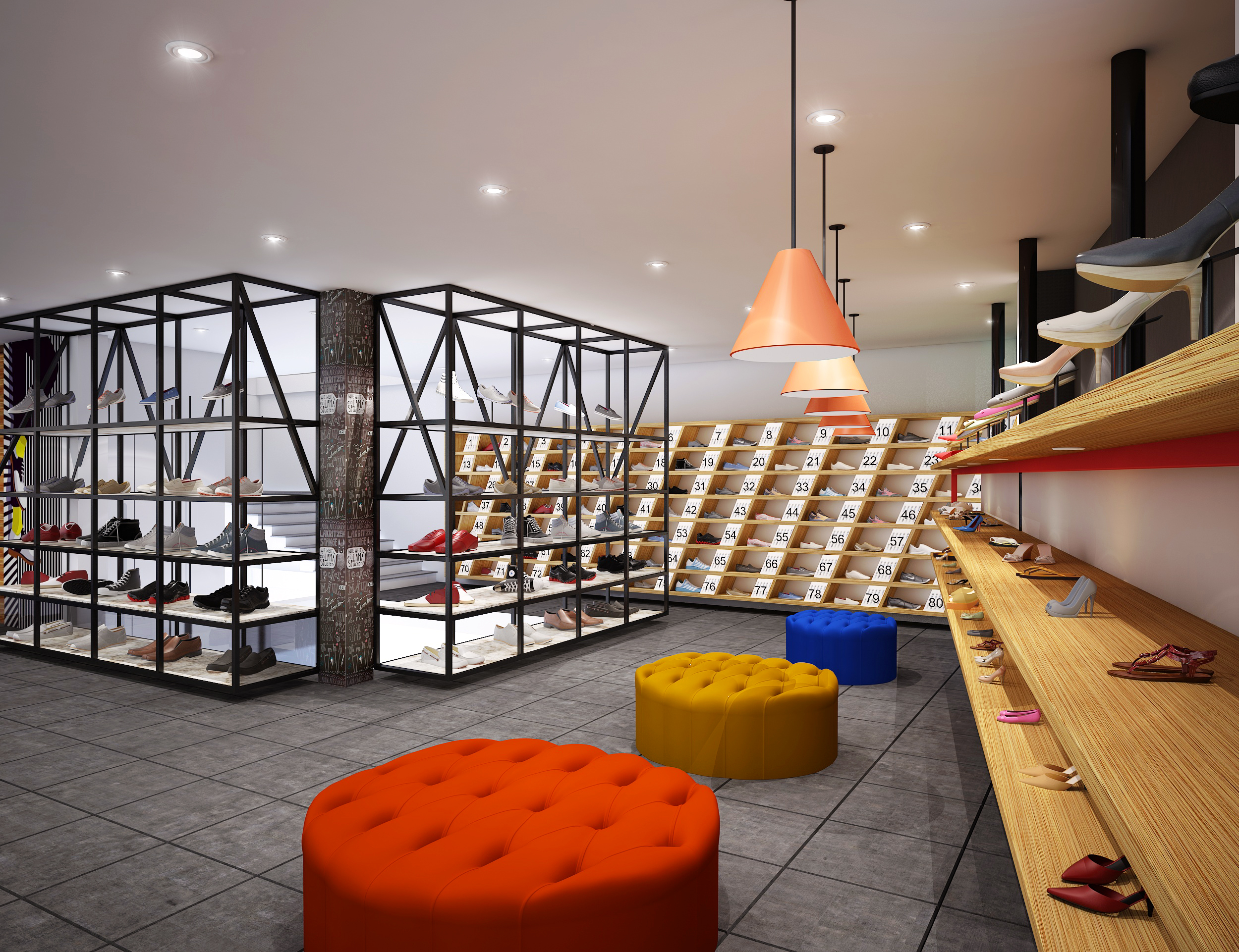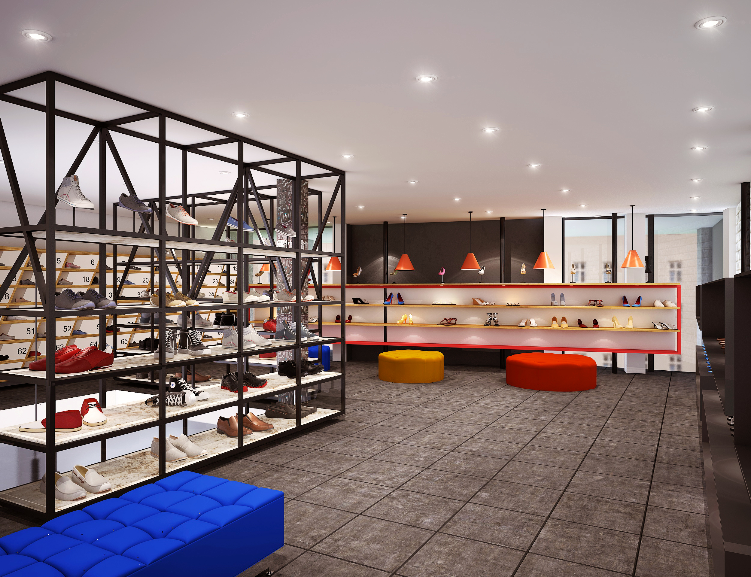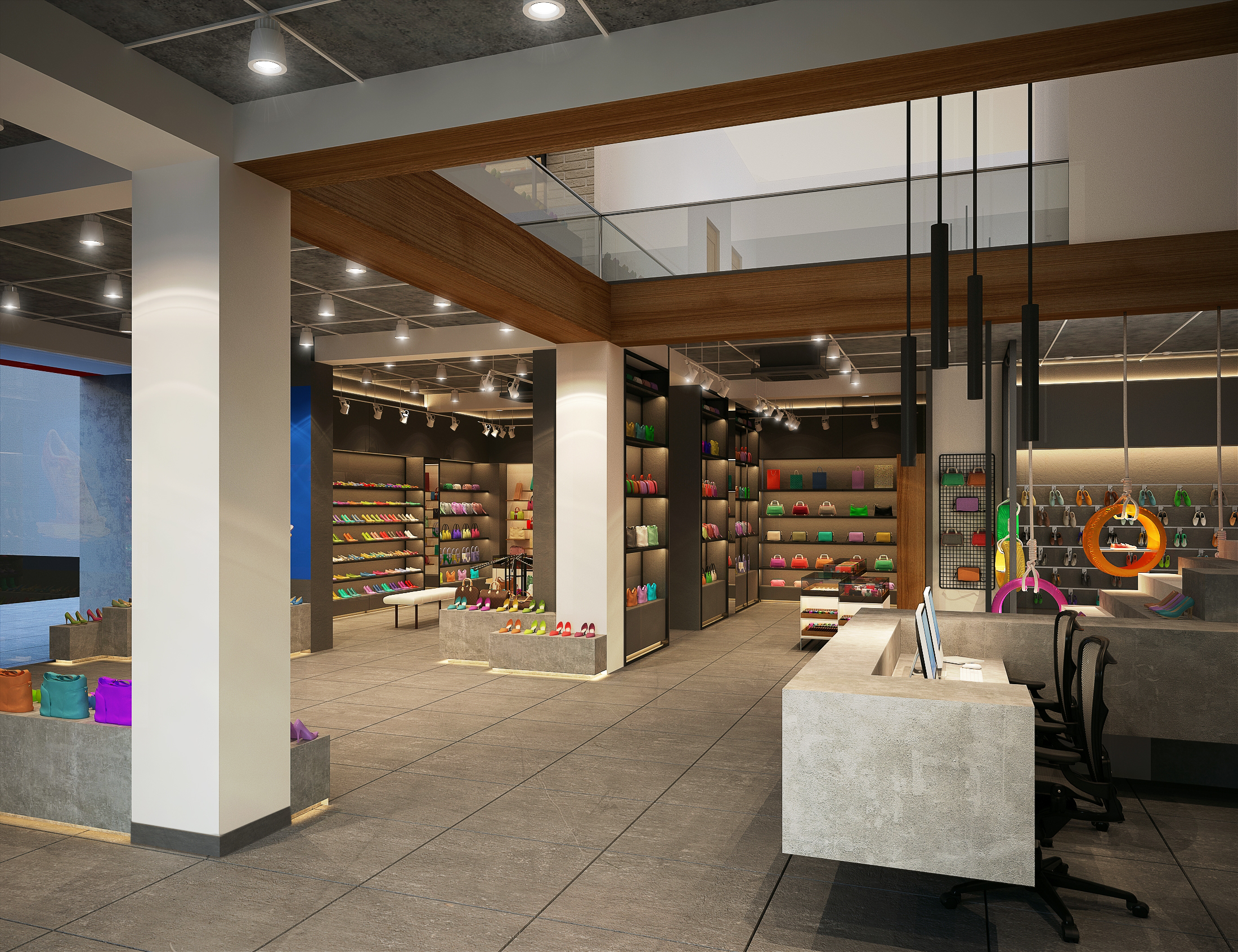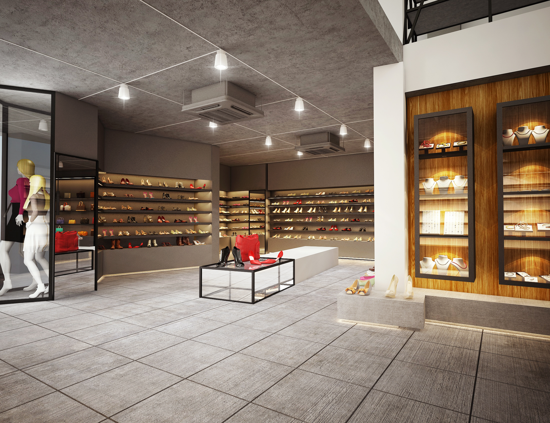 A modern shoebox retail space designed with a sleek layout and contemporary interiors, focused on effective product display and a clean, engaging customer experience.